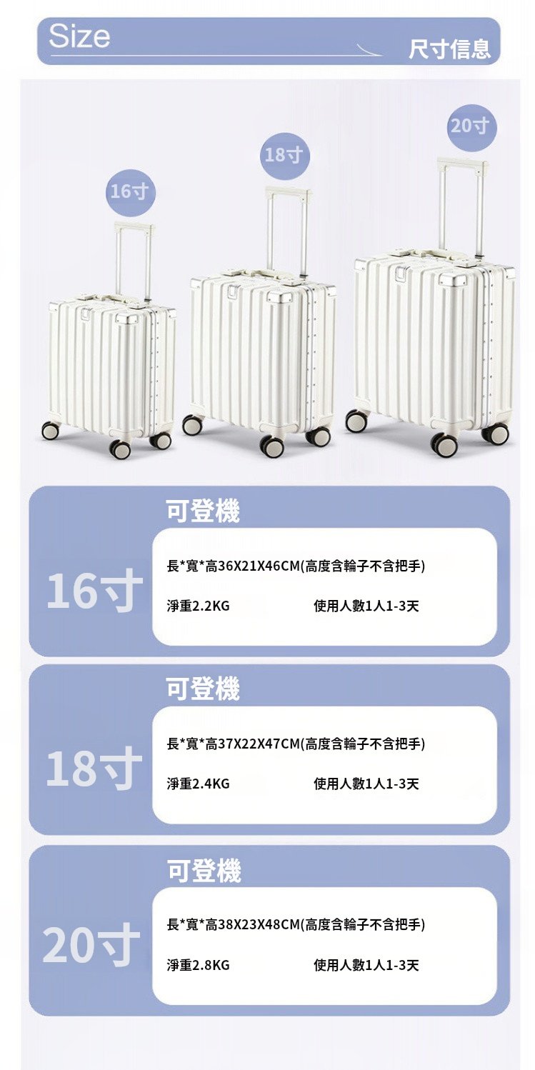 🔥全港送貨+免運‍⭐鋁框行李喼 隱藏置物掛鉤 16吋/18吋/20吋 小號旅行喼 登機喼 拉桿喼 萬嚮輪 密碼喼