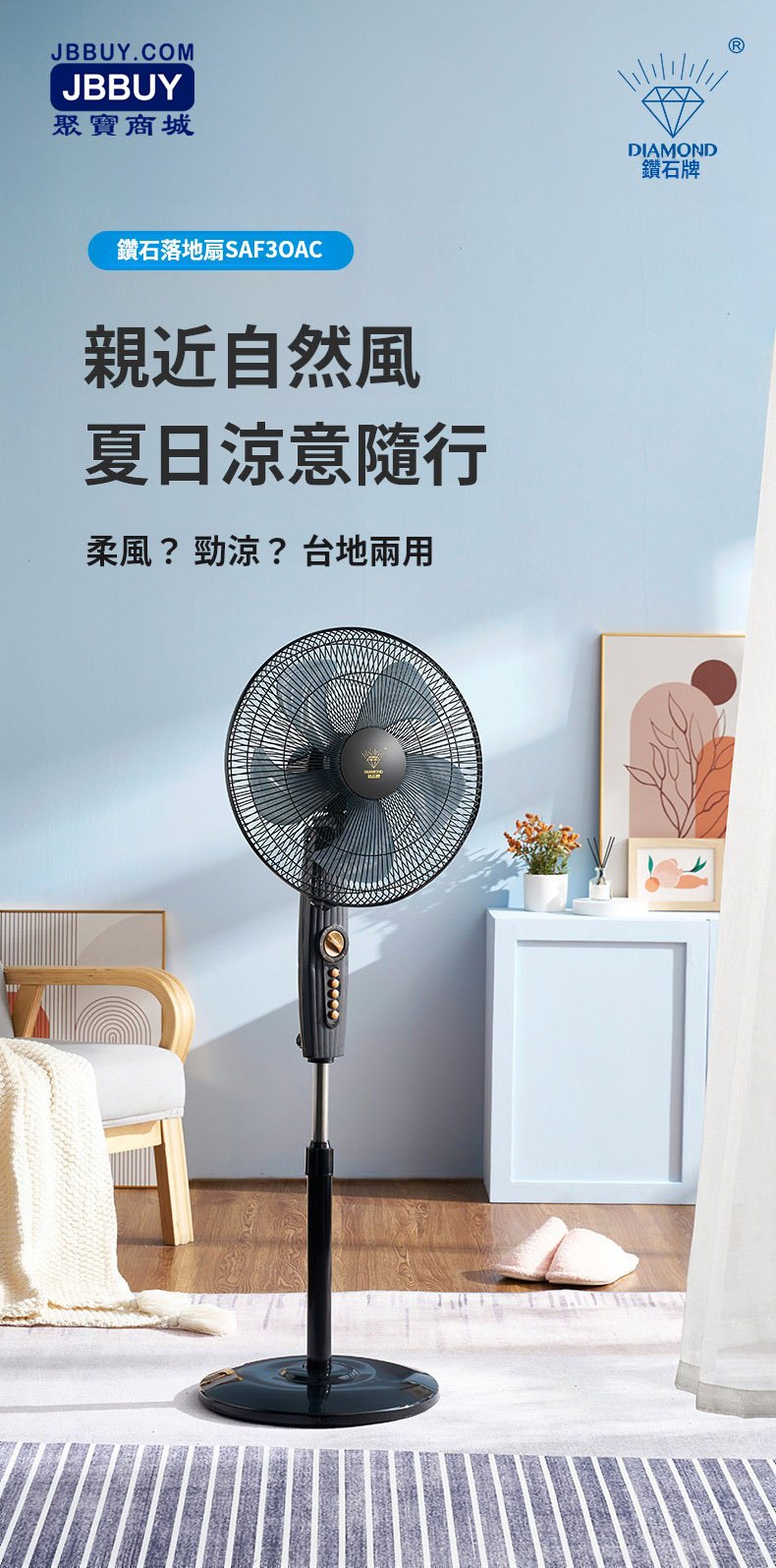 🔥全港送貨+免運‍⭐鑽石牌風扇 家用立式 靜音電風扇 辦公室客廳宿舍 搖頭式 大風力 落地扇