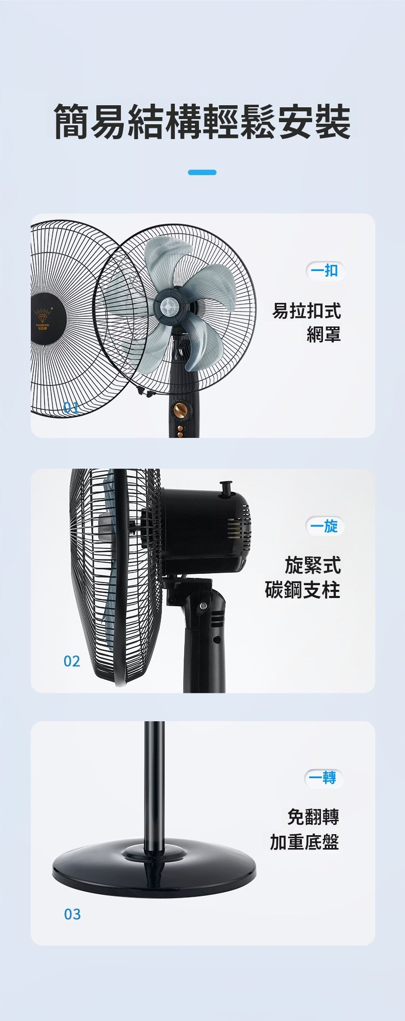 鑽石牌風扇機械款(加重底盤), 長虹機械款(加重底盤), 長虹遙控款(加重底盤), 長虹循環扇機械款(加重底盤), 鑽石之風品牌機械款(18寸)