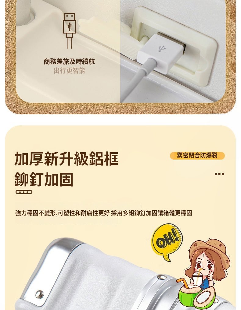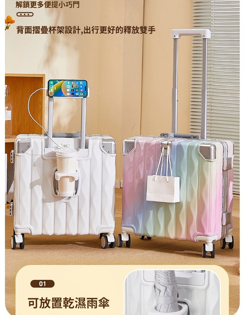 彩虹色【鋁框登機款】, 白色【鋁框登機款】, 粉色【鋁框登機款】, 黑色【鋁框登機款】, 牛油果綠【鋁框登機款】, 薄荷綠【鋁框登機款】, 彩虹色【拉鍊登機款】, 白色【拉鍊登機款】, 奶黃色【拉鍊登機款】, 黑色【拉鍊登機款】, 薄荷綠【拉鍊登機款】, 牛油果綠【拉鍊登機款】, 粉色【拉鍊登機款】